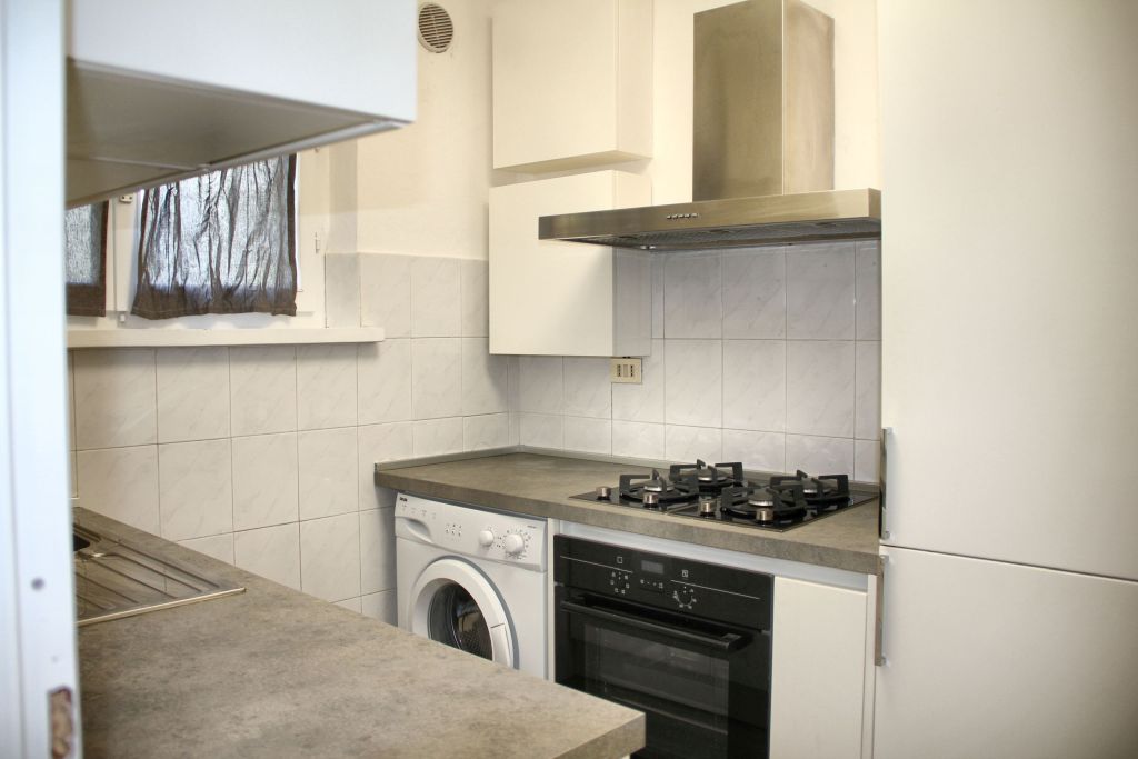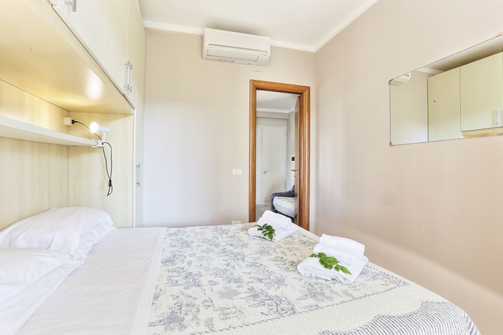 Il secondo dei due bilocali copre una superficie di 35 mq e propone un soggiorno con angolo cottura (fornello con fuochi a gas, cappa aspirante, scolapiatti, frigorifero, stoviglie da cucina) e divano letto matrimoniale, una camera matrimoniale con un letto singolo, un bagno dotato di lavabo, bidè, wc e doccia con box.